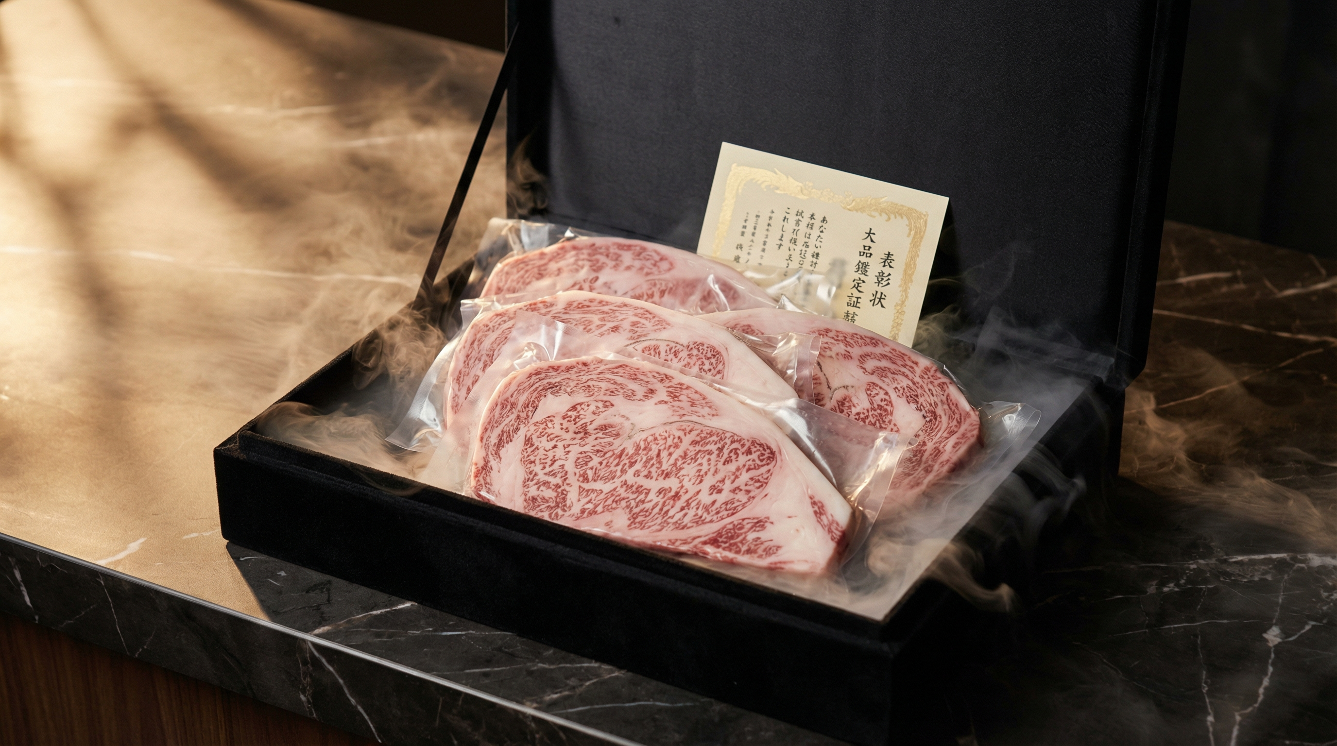 - Mixed cut gift set: 2-3 different cuts (ribeye + striploin + filet) totaling 12-16oz A5 ($180-240)